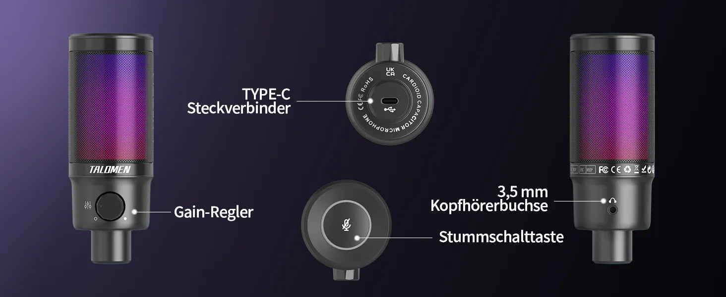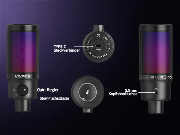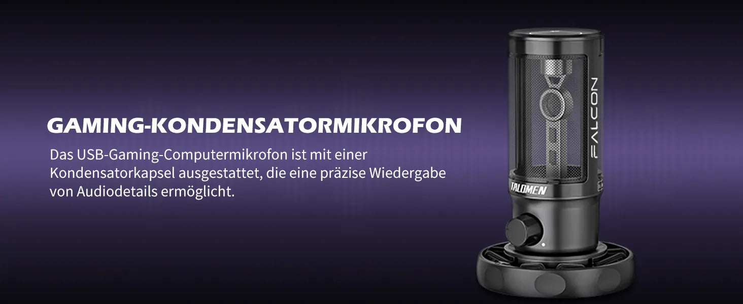 Talomen Falcon ist ein Nierenkondensatormikrofon, das Geräusche vor Ihnen präzise aufnimmt und Geräusche von den Seiten und von hinten reduziert. Es verstärkt Ihre Stimme effektiv und reduziert Umgebungsgeräusche beim Spielen oder Streamen. Talomen USB-Mikrofone sind das perfekte Geschenk für Gamer und YouTuber.
