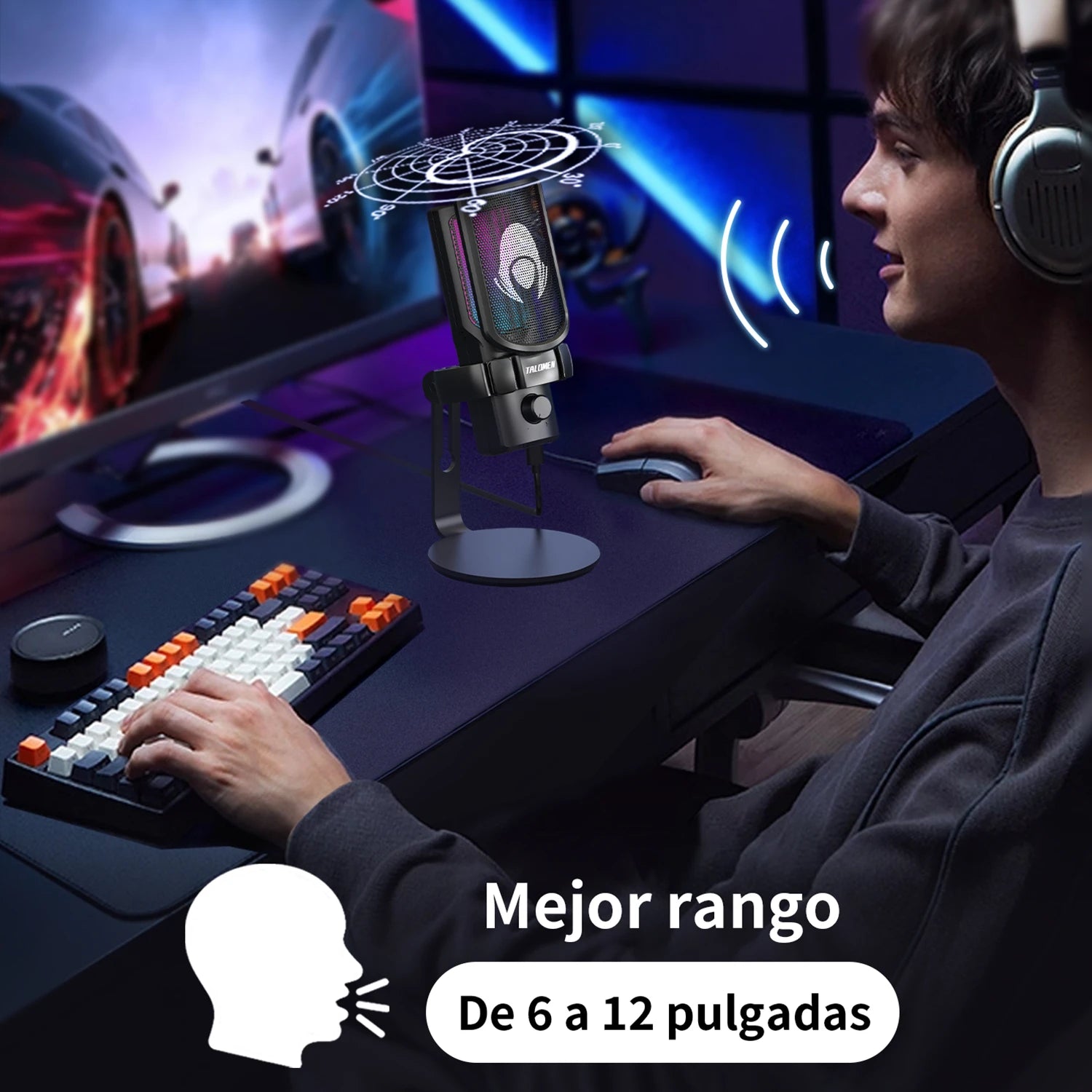 El micrófono para juegos USB Talomen tiene luces RGB brillantes para mejorar la atmósfera de juego; también puede capturar su voz en un entorno ruidoso, comunicarse de manera más eficiente y mejorar la diversión del juego.