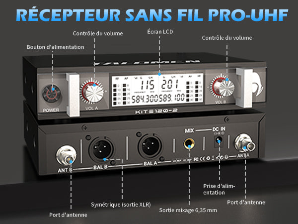Talomen K120 | Système de microphone sans fil UHF professionnel