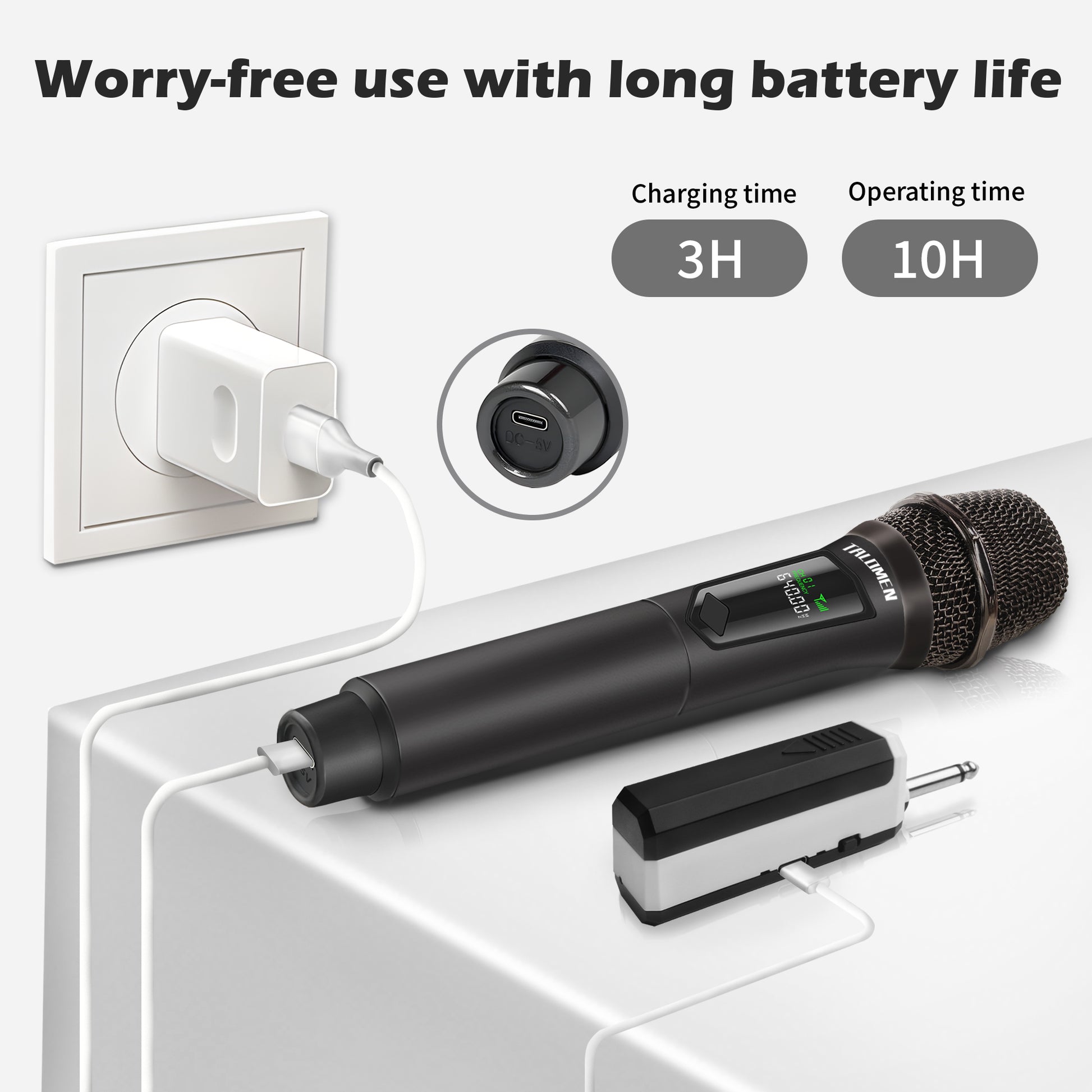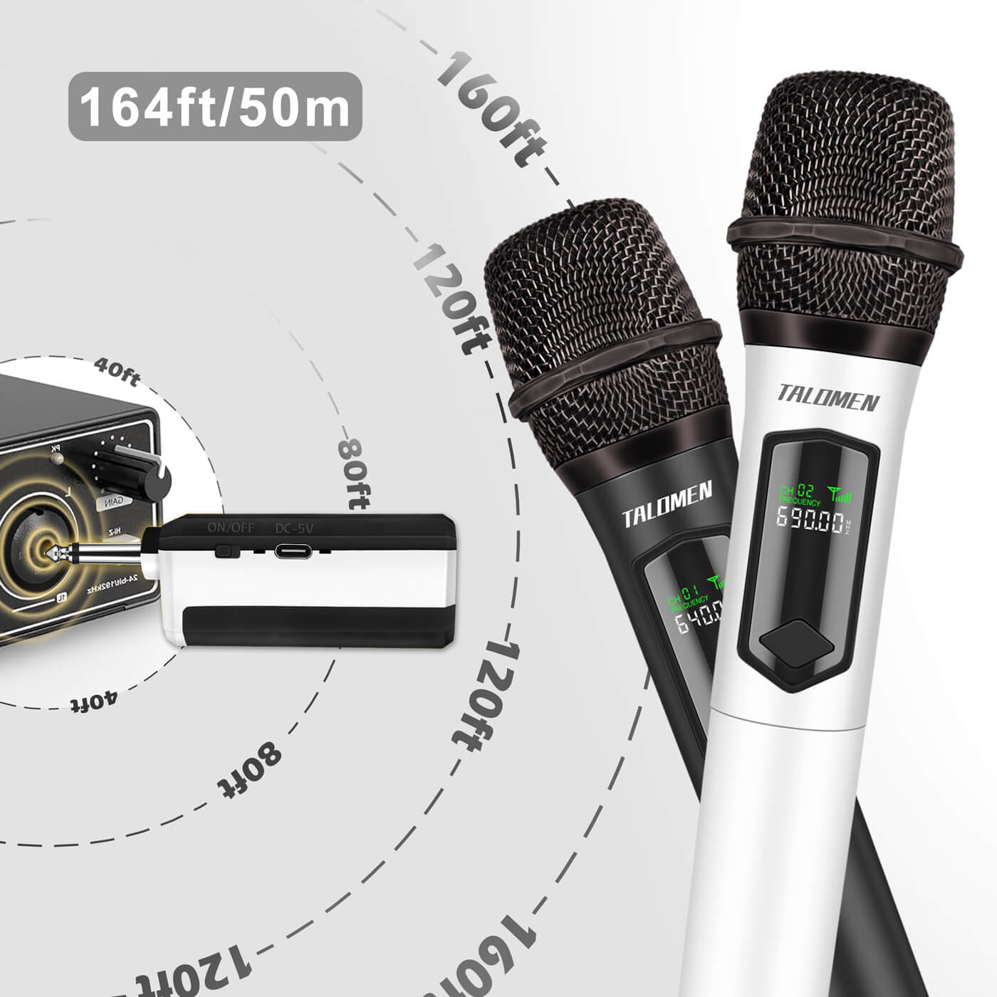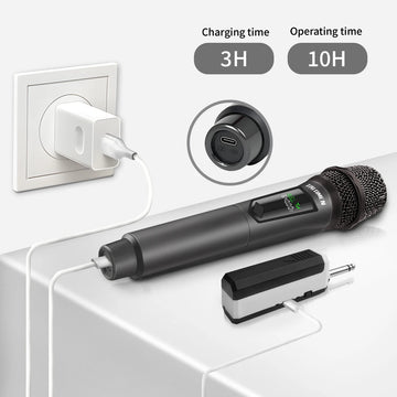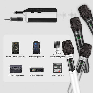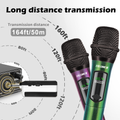 Adopting an innovative chip makes the microphone's signal have 160ft operating range (line of sight) to freely move around during performances.Lower latency, tamper-proof, and a more stable signal without worrying that the sound will be cut off during use. Suitable forindoor and outdoor events such as family karaoke, church, weddings, conferences, speeches and small stage performances.