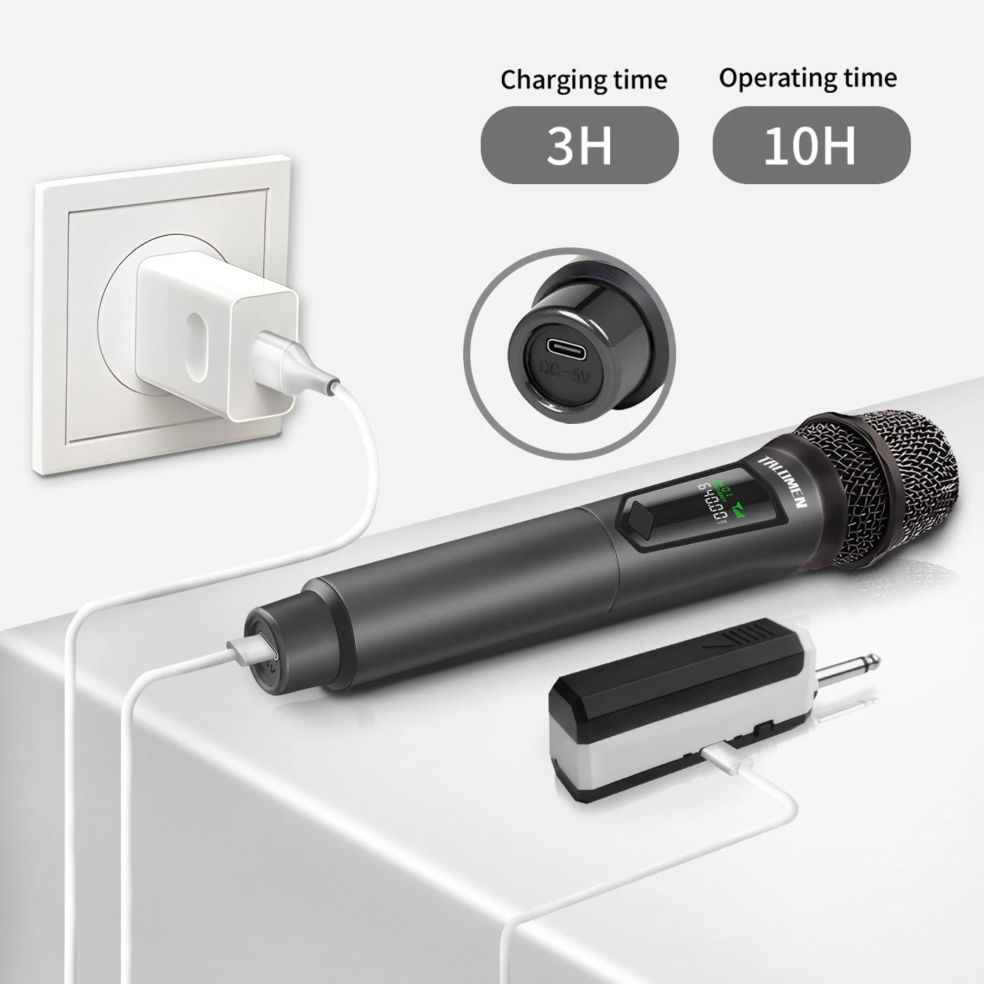 Plug the receiver into the MIC input port and start using the microphone to showcase your voice.