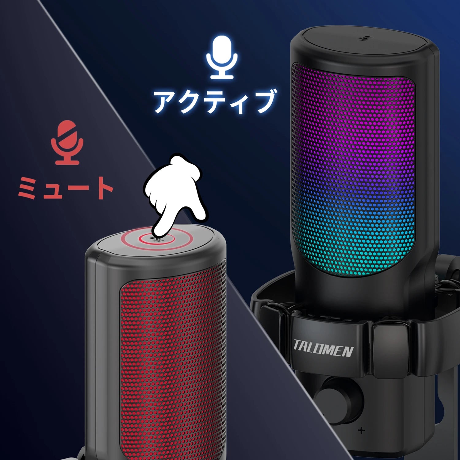 Talomen USB ゲーミング マイクには、7 つのカラー モードを備えた鮮やかな RGB 照明が備わっており、臨場感あふれるゲーム環境を作り出します。