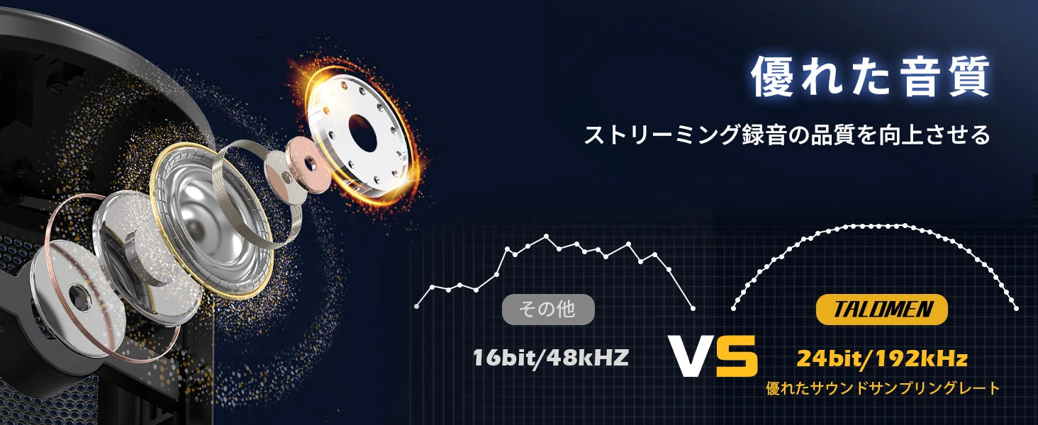 同じタイプの他の製品と比較して、Talomen Eyas USB マイクは音質のサンプリング レートが優れているため、送信するサウンドの品質を大幅に向上させることができます。